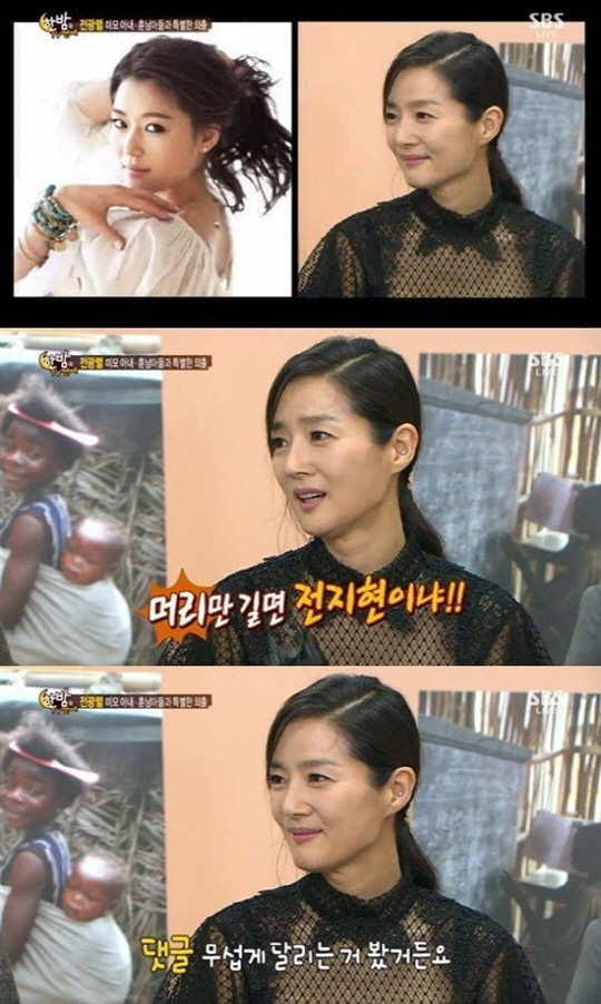 이에 박수진은 "민망한 이야기 하지 마라"며 손사레 쳤다. "전에 그런 내용의 기사를 인터넷에서 봤다. 사람들이 댓글에 '머리만 길면 전지현이냐'고 하더라. 댓글이 엄청난 속도로 달리는 걸 봤다"며 악성 댓글에 대한 고충을 토로해 주위를 안타깝게 했다.