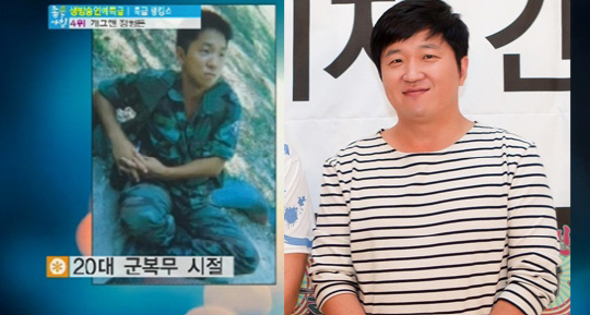 개그맨 정형돈의 군복무 시절의 사진이 공개돼 눈길을 끈 가운데, 정형돈의 현재 모습이 비교돼 화제를 모았다.