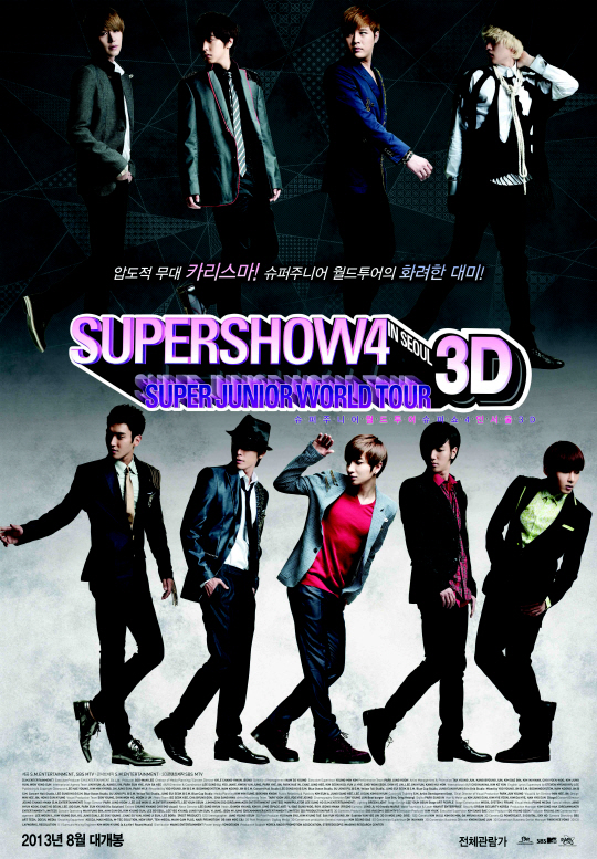 콘서트 3D 영화 '슈퍼쇼4 3D'는 지난해 5월 서울 올림픽공원 체조경기장에서 성황리에 펼쳐진 슈퍼주니어 월드 투어 '슈퍼쇼4'의 서울 앙코르 공연실황을 3D로 제작, 스크린에 옮긴 것으로 오는 8월 8일 개봉된다.