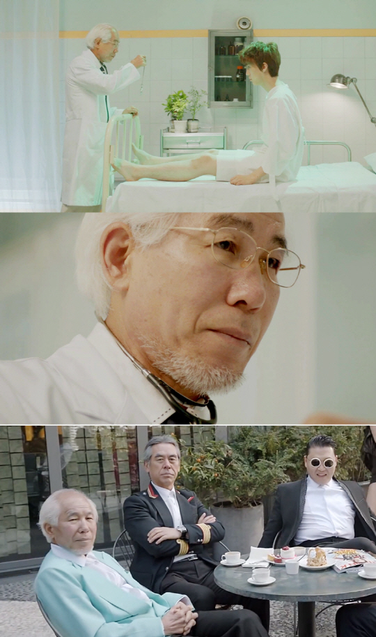 11일 공개된 '미쳐가' 뮤직비디오는 정신병원과 정신분열을 모티브로 한 독특한 내용과 감각적 구성이 돋보인다. 이번 영상에는 정신분열 환자 역을 맡은 멤버 승엽과 간호사 역할을 레인보우 김재경 조현영, 백발의 노인 의사 선생님이 등장해 오싹한 병실 상황을 연기했다. 그런데 이 의사 선생님은 '젠틀맨' 뮤직비디오에 등장하는 4명의 할아버지 중 한 명인 강희중이었던 것. 강희중은 '젠틀맨' 뮤직비디오에서 싸이의 뒤를 따라다니는 백발의 할아버지로 출연해 얼굴을 알렸다. 이번엔 인자하면서도 오싹한 분위기를 연출, 뮤직비디오계의 '미친 존재감'임을 입증한 것. 해외 팬들은 댓글을 통해 강희중에 대한 응원 메시지를 보내고 있다.