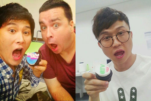 개그맨 샘해밍턴이 '어럽쇼!' 멤버들과 스태프에게 컵케이크를 선물했다.