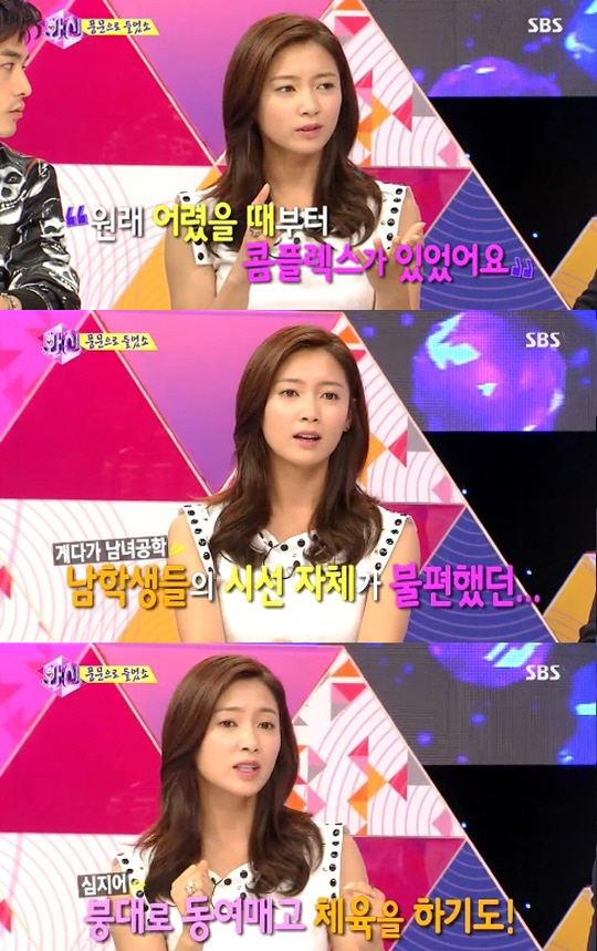 이어 그녀는 "큰 가슴에 콤플렉스가 있어서 어렸을 때는 넥크라인을 따라 양면테이프를 붙이기도 했다"고 털어놨다.