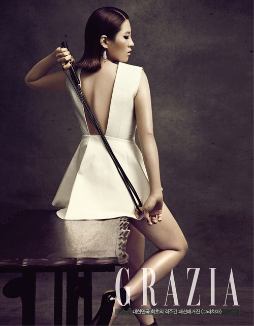 드러난 가슴 라인과 아찔한 포즈로 모델같은 카리스마를 발산해 촬영 스태프들을 놀라게 했다는 후문이다. 또 다른 사진에서도 자켓 안에 란제리룩으로 가녀리지만 탄력있는 몸매를 과시했다. 아찔한 뒤태를 선보인 사진에서는 채찍을 들고 매끈한 등라인을 선보였따.