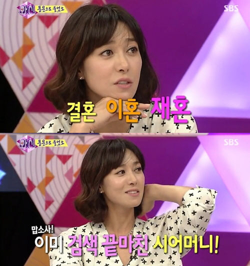 이후 "어느 날 한 번 '연관검색어에 재혼이 올라와있더라고요'라고 먼저 말했더니 시어머니가 '그래 그런 게 있더라'라고 말씀하셨다. 그래서 곧바로 해명했다"며 해명 후 이야기를 무마하게 됐던 사연을 전했다.