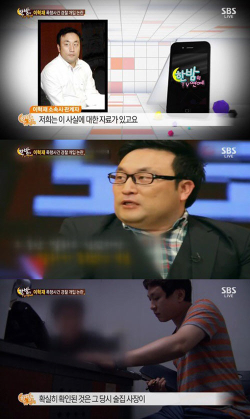 17일 방송된 SBS '한밤의 TV연예'는 이혁재가 한 인터뷰에서 "2010년 폭행사건 후 경찰이 합의금을 요구했다. 그 경찰이 허위 사실을 유포해 문책성 인사조치를 받았다"고 주장한 일을 다뤘다.