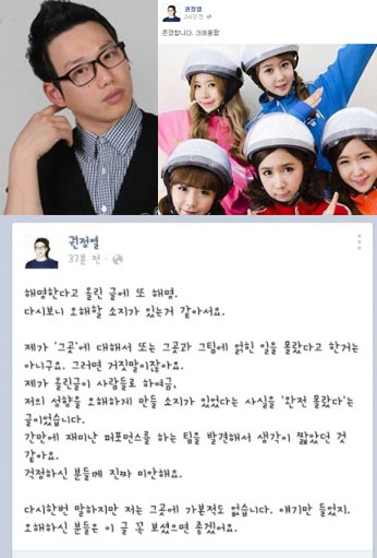 권정열은 한차례 해명에도 '일베' 의혹이 사그라지지 않자 18일 권정열은 "해명한다고 올린 글에 또 해명. 다시 보니 오해할 소지가 있는 거 같아서요"라며 글을 게재했다.