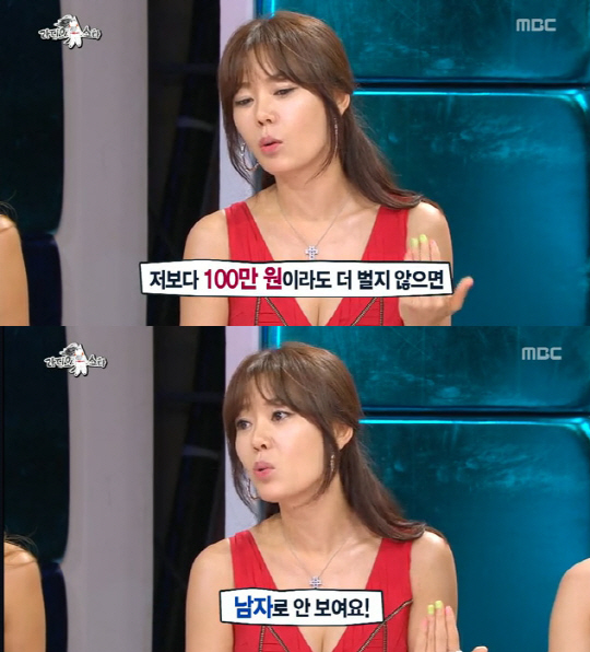 안선영은 지난 17일 MBC '황금어장-라디오스타'에 출연해 "저는 좀 속물이라 저보다 100만 원이라도 더 벌지 않으면 남자로 안 보인다. 저는 재벌 2세, 집안 돈 많은 거 하나도 안 따지지만 본인의 연봉이 저보다 100만 원이라도 많아야 존경심이 생긴다"라고 밝혔다.