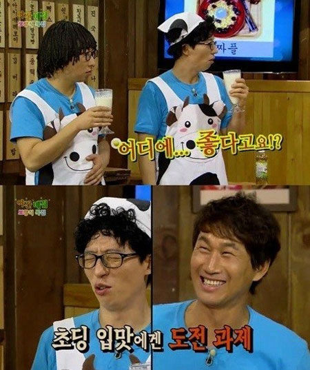 결국 유재석은 앞서 양상국이 소개했던 '꿀빵'을 '마 바나나 주스'와 함께 마셨고 "난 이런 꿀이 좋다"라며 초딩입맛을 자랑했다. <스포츠조선닷컴>