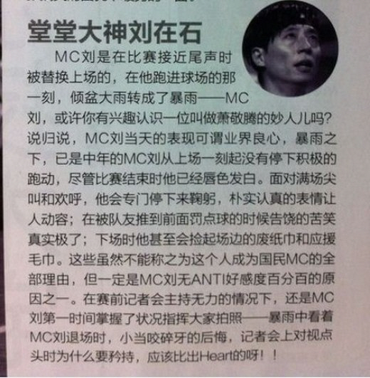 또 "유재석은 시합 전 기자회견에서 주최 측의 무력함을 대신해 먼저 나서서 상황을 정리하고 모든 시민이 사진을 찍을 수 있도록 도왔다"며 "이러한 모습만 보고 그를 '국민MC'라 단정 지을 수 없다. 그러나 이런 점은 유재석이 많은 사람의 호감을 얻는 이유 중에 하나 임은 분명하다"고 전했다.