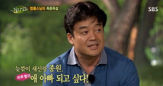 이에 게스트로 출연한 백종원은 법륜스님에게 대체 언제쯤 아이를 가질 수 있는지를 물으며 "아이를 빨리 갖고 싶습니다"라고 솔직하게 털어 놓았다.