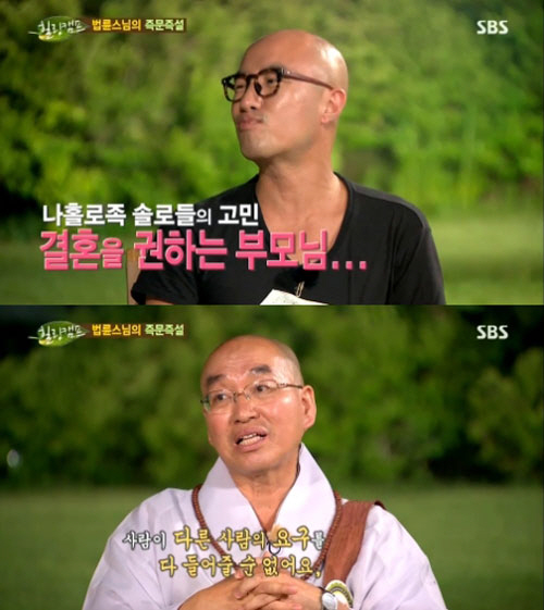 이날 방송에서 출연자들은 고민을 털어놓고, 법륜스님이 '즉문즉설'로 답하는 힐링의 시간을 가졌다.