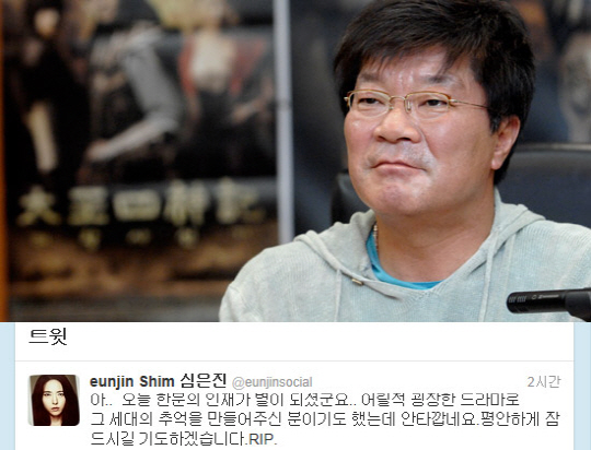 23일 김종학 PD가 숨진 채 발견된 가운데 가수 심은진이 애도의 글을 게재했다.