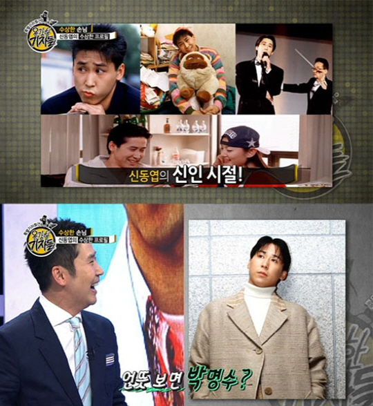 데뷔 초 신동엽의 사진을 본 출연진들은 "지금이 낫다", "박명수 같다"며 거침없이 이야기들을 쏟아냈다. 그러자 신동엽은 "잘생긴 박명수다"며 셀프 디스를 해 스튜디오를 폭소케 했다.