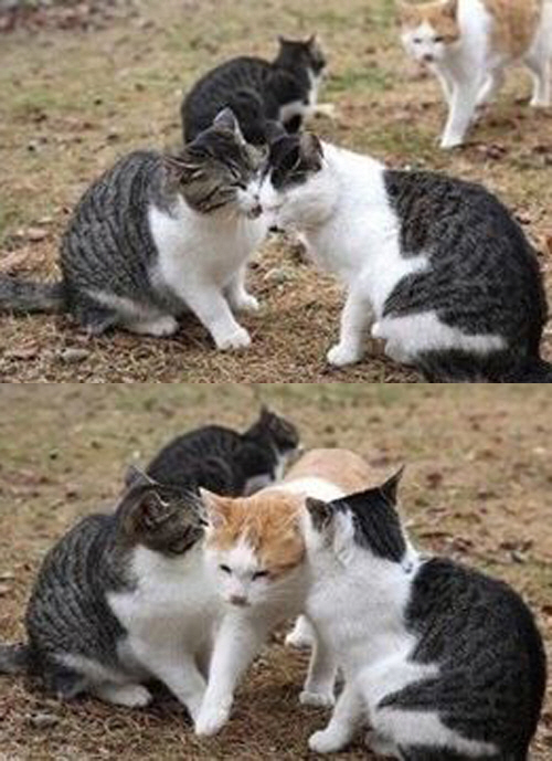 애정표현을 하는 두 고양이를 방해라도 하려는 듯 자연스럽게 사이를 떨어트리고 지나가는 모습에 '커플 파괴자'라는 제목이 붙었다.