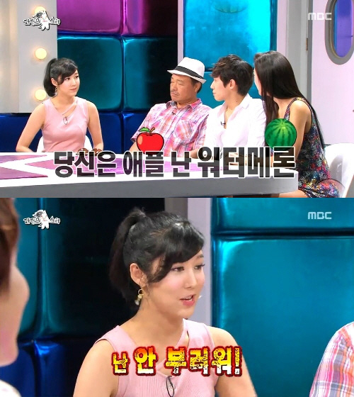 가슴 크기를 과일에 빗댄 사유리의 돌발발언에 모두들 빵 터졌지만 정작 사유리는 "난 안 부럽다"며 태연한 반응을 보여 웃음을 자아냈다. <스포츠조선닷컴>