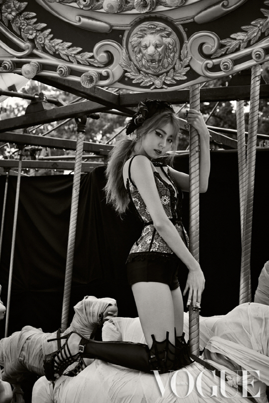 애프터스쿨 유이가 최근 '보그 코리아'와의 화보 촬영에서 몸매를 드러낸 의상과 함께 매혹적인 눈빛과 포즈의 흑백사진을 촬영했다.