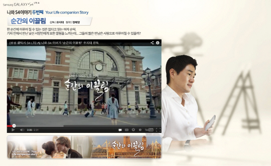 유지태 감독의 '순간의 이끌림' 작품 속에서 갤럭시S4는 소중한 순간을 기억하게 해주며 새로운 만남을 이어 주는 매개체로 등장해 '사운드 앤 샷'을 통해 여행의 순간을 기록하며, 'S트랜스레이터'로 외국인 친구와 새로운 인연을 만들어 가는 이야기를 담고 있다. 1초, 눈 깜짝할 사이 지나가 버리는 숱한 짧은 순간을 포착해 상황에 따라 강력한 힘을 발휘한다는 메시지를 전한다.
