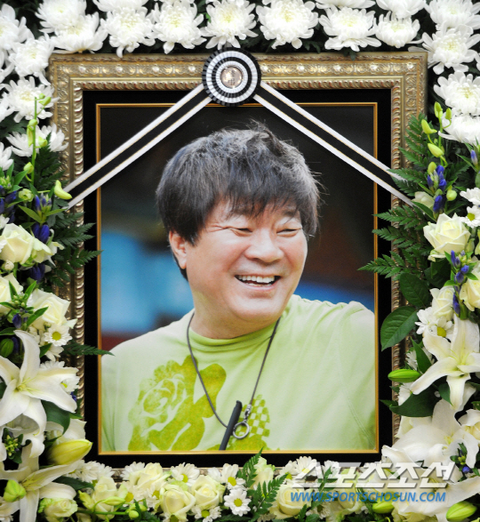 23일 오후 경기도 성남 분당 차병원 장례식장에 '태왕사신기', '모래시계', '신의' 등을 연출한 대한민국 드라마계의 대부로 불렸던 김종학 PD의 빈소가 마련되어 있다. 김종학 PD의 영정이 밝은 표정으로 조문객들을 맞이하고 있다. <사진공동취재단>