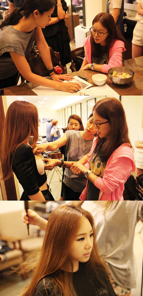 사진에서 백지영은 편한 옷차림과 민낯으로 제자인 유성은의 스타일을 체크하는가 하면 진지한 표정으로 스태프들과 대화를 나누고 있다.