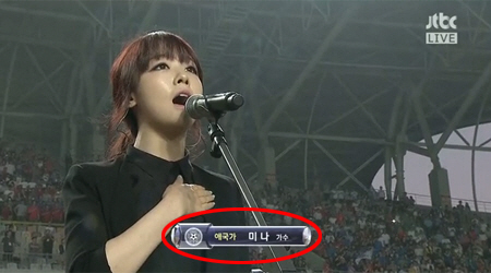 앞서 민아는 '2013 동아시안컵 대회' 대한민국 대 중국의 경기에서 애국가를 제창했다.