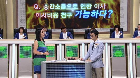 '제 1법정'에서는 윗집에 신혼부부가 이사온 후 층간소음에 시달리던 의뢰인이 참다 못해 결국 이사를 하기로 했을 때 이사 비용을 청구할 수 있는지 여부를 놓고 갑론을박이 펼쳐진다. 치열한 공방에 앞서 국민 대표 배심원단과 변호사들이 '층간 소음'으로 고충을 겪었던 실제 경험과 해결했던 방법들을 털어놓는다.