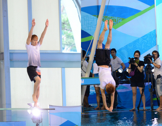 은혁은 망설임 없이 스프링 플레이트를 박차고 나간 후 한 바퀴 반 회전 후 수직으로 입수하며 성공했다.
