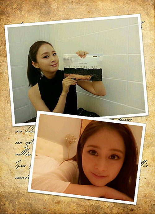 사진에는 머리를 단정히 묶고 검은색 민소매 티셔츠를 입은 김태희가 손에는 대본을 든 채 살짝 미소를 띄며 카메라를 응시하고 있는 모습이다. 이어 짙은 눈 화장을 한 김태희는 초근접 사진임에도 잡티 하나 없는 뽀얀 피부와 함께 브이라인 턱선을 과시, 대한민국 여신다운 외모를 뽐냈다.