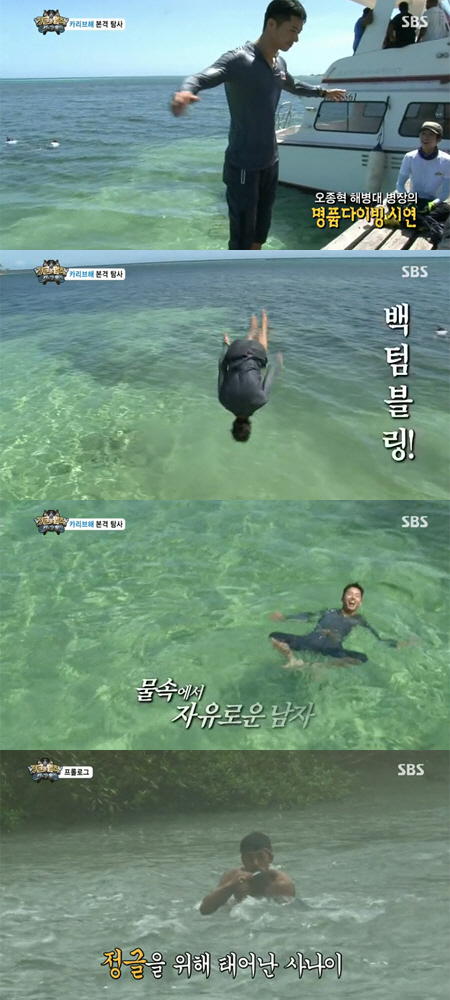 해병대 출신 가수 오종혁이 명품 다이빙을 선보였다.
