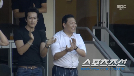 톱스타 송승헌과 국제가수 싸이가 류현진(26)과 추신수(31) 선수의 맞대결 응원 현장에 나란히 앉아 있는 모습이 포착돼 화제다.