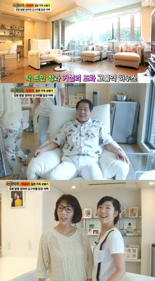 사유리의 저택으로 소문난 집 내부는 탁 트인 창에 거실은 화이트 톤의 고급스러운 가구들로 꾸며져 있었다. 또 거실 탁자에는 한국 잡지에 등장한 사유리의 모습과 각종 가족사진들이 진열돼 있었다.