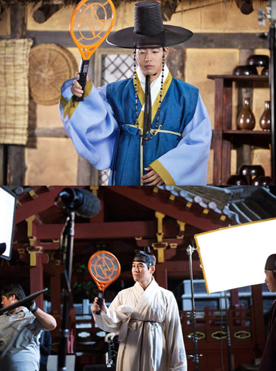 그러나 그의 손에 든 물건이 심상치 않다. 전기 파리채를 들고 한 여름 밤 연기자들과 스태프들을 위해 모기를 퇴치하는 진중한 모습은 어딘가 모르게 엉뚱한 매력을 발산하며 웃음을 자아내고 있다.