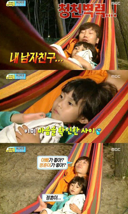 이날 방송에서 송종국과 해먹에서 즐거운 시간을 보내던 지아 양은 "나 좋아하는 사람이 생겼다. 하지만 아빠보다는 아니다"며 "내 남자친구다. 여자애들에게 인기가 진짜 많다"고 폭탄발언을 해 '딸 바보' 송종국을 당황케 했다.