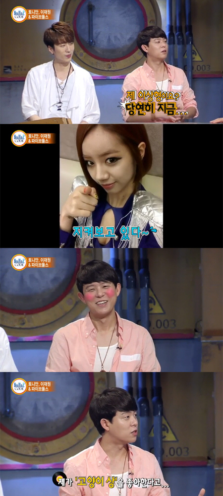 이에 MC 탁재훈은 "토니안과 이상형이 겹치지 않냐"고 물었고, 당황한 토니안은 "내 이상형은 당연히 지금..."이라며 조심스러운 듯 말을 줄였다.