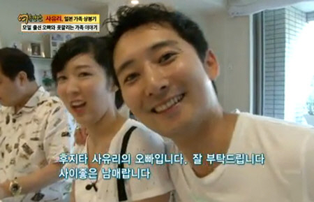 특히 이날 방송에서는 훤칠한 키와 준수한 외모를 자랑하는 사유리의 오빠 후지타 노리아키가 공개돼 눈길을 끌었다. 이날 사유리의 오빠는 오랜만에 본 동생을 위해 손수 음식을 준비하는 모습을 선보였다.