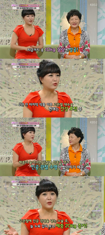 2년 전 주말드라마 출연 이후 고관절 수술을 받고 연기 활동을 쉰 이의정은 "수술받은 후 계속 누워있다 보니까 갑자기 18~20kg이 쪘다"고 토로했다.