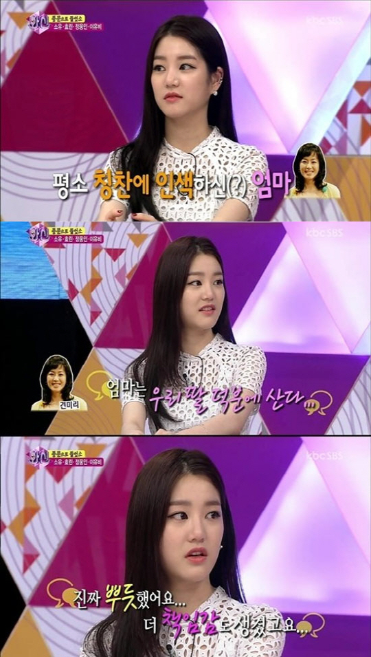 이어 이유비는 칭찬이 인색한 어머니에게 감동한 사연을 고백했다. 그는 "최근 종영한 MBC 드라마 '구가의 서'에서 감정신이 많아 연기하기 너무 어려웠다"며 "어머니가 보시기에 딸이 얼마나 부족해 보였겠냐. 나보다 엄마가 더 불안하고 그랬을 텐데 드라마 끝날 때까지 티도 안 내고 아무런 터치를 안 하셨다"고 이야기했다.
