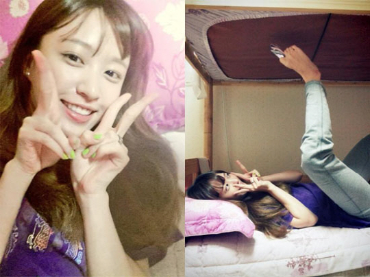 하니가 공개한 사진에는 침대에 누워 브이를 그린 채 환하게 웃고 있는 모습이다. 잡티 없는 하얀 피부에 긴 생머리를 늘어뜨린 청순한 미모가 시선을 사로잡는다.