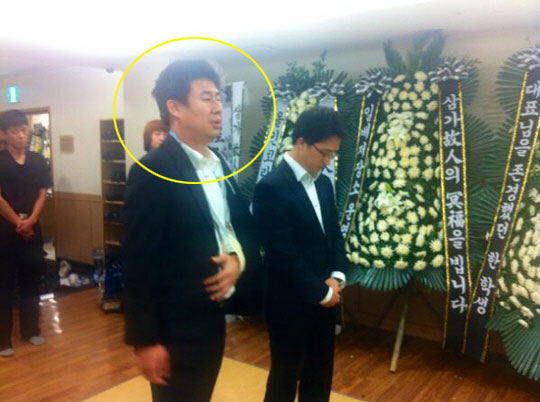 지난 30일 강태호PD는 자신의 트위터에 "(조문) 여의도 성모병원 남성연대 성재기 대표의 빈소를 방문한 개그맨 남희석입니다"라는 글과 함께 한 장의 사진을 게재했다.