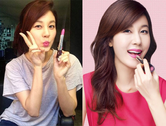 공개한 사진에는 소개한 립스틱을 들고 브이를 그린 귀여운 모습이다. 특히 핑크톤의 립스틱을 바르고 입술을 내민 그녀의 애교스러운 포즈가 사랑스럽다.