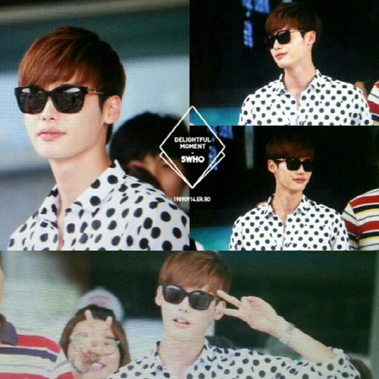 사진 속 이종석은 도트 무늬 흰 셔츠에 썬글라스를 착용했다. 작은 얼굴을 가리는 선글라스를 끼고 팬들을 향해 브이 포즈까지 지어보여 주는 서비스로 보는 이를 즐겁게 했다.