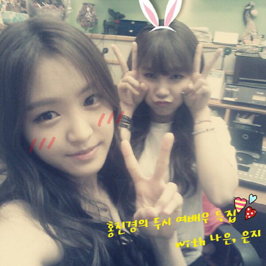 2일 KBS 2FM 라디오 '홍진경의 두시' 공식 트위터에는 "홍진경의 두시 여배우 특집! 오늘의 스페셜 DJ 에이핑크의 손나은 정은지에요. 셀카 투척하고 갑니다"라는 글과 함께 사진 한 장이 게재됐다.