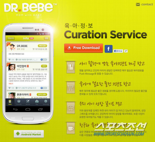 이밖에 사진, 글을 통해 육아일기를 작성할 수도 있고, 커뮤니티 기능을 제공해 비슷한 연령의 아이를 가진 또래 엄마들과 육아를 하며 겪는 고민과 정보를 함께 공유할 수 있다. 닥터베베 김영준 이사는 "인터넷 상에 육아에 대한 수많은 정보가 무분별하게 존재하고 있는 만큼 전문적인 기준을 가진 큐레이션이 필수적인 영역이라고 생각한다"며, "'닥터베베'는 육아를 고민하고 있는 부모들에게 스마트한 해결책을 제시하는 서비스가 될 것"이라고 말했다. 안드로이드 전용 앱으로 구글스토어에서 '닥터베베'를 검색해 무료로 다운로드 받을 수 있다.