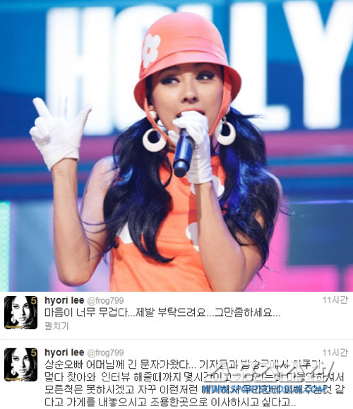 이효리는 4일 자신의 트위터에 "상순오빠 어머님께 긴 문자가 왔다. 기자들과 방송국에서 하루가 멀다 찾아와 인터뷰 해줄 때까지 몇 시간이고 기다리는데 마음 약하셔서 모른 척은 못하시겠고 자꾸 이런저런 얘기해서 우리한테 피해주는 것 같다고 가게를 내놓으시고 조용한 곳으로 이사하시고 싶다고.."라는 글을 남겼다.