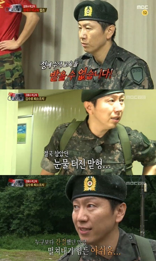 이날 특히 김수로는 훈련 강도가 높기로 유명한 이기자부대 수색대대 훈련을 소화하기 위해 3.5kg를 감량하고, 모든 스케줄을 뒤로 한 채 어깨 재활훈련에 매진하는 등 가장 들뜬 모습으로 등장했다.