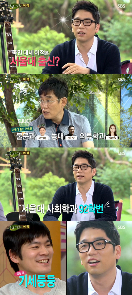 이날 MC 이경규는 "이적이 서울대학교 출신이라고 들었다. 연예인 중에 서울대학교 불문과 서경석, 농대 이수만, 의류학과 김태희가 대표적인데 이적은 무슨 과 출신이냐"고 물었다.