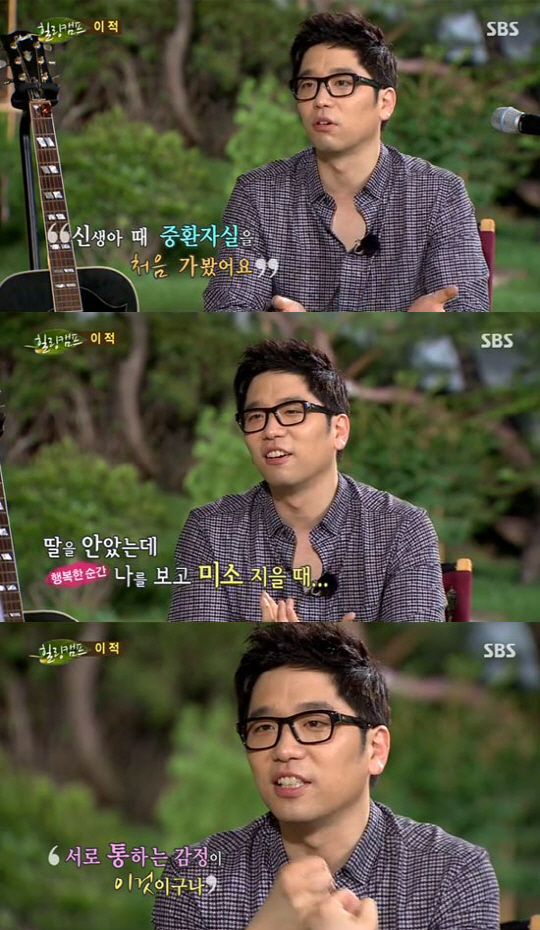 이날 방송에서 MC 이경규는 "살아오면서 가장 행복했던 순간이 언제이었느냐"며 이적을 향해 질문을 던졌다. 그러자 이적은 "둘째가 생후 80일 좀 넘은 것 같다. 신생아 때 중환자실을 처음 가봤다"고 말문을 열었다.