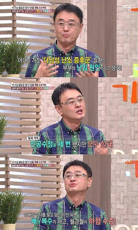 그는 "아내가 다낭성 난소 증후군 난임 질환이 있어서 임신이 안 되는 이유가 아내에게 문제가 있어서인 줄 알았다"며 "하지만 검진 결과 나에게도 문제가 있었다. 내 정자가 좌우로는 잘 움직이는데 앞으로는 전진을 잘 못한다더라"고 말했다.