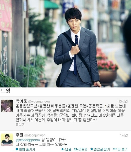 배우 주원이 동료 배우 박기웅의 연기 칭찬에 화답했다.