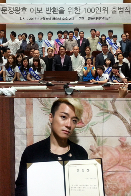 이미 지난 2012년부터 뇌사 시 장기기증 희망등록과 함께 생명나눔 실천본부 홍보대사, 중랑구 건강 가정 홍보대사, 다문화 가족 홍보대사, 한국 만화 명예 홍보대사 등 다양한 문화 홍보대사를 맡아 적극적인 활동을 펼쳐온 아웃사이더는 "올해 6.25 정전 협정 60주년을 맞아 문정왕후 어보 반환운동이 더욱더 뜻깊은 일이 될 것 같다."라고 소감을 전해 진정한 개념스타임을 인증했다.