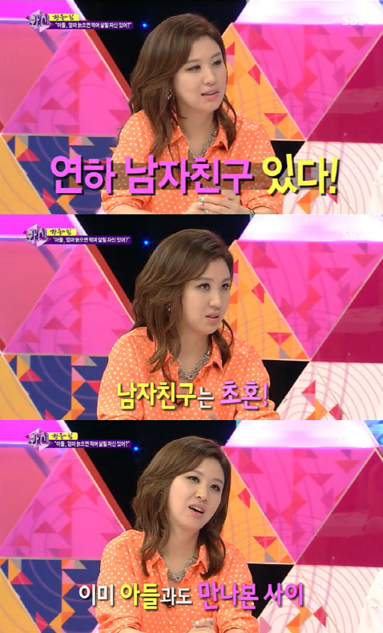 또 김성경은 "사실 현재 3살 연하의 남자친구가 있다"라며 "그 남자친구는 결혼 경험이 없다. 때문에 그쪽에서 조심스럽게 생각하고 있는 상황이다"라고 깜짝 고백해 눈길을 끌었다. <스포츠조선닷컴>